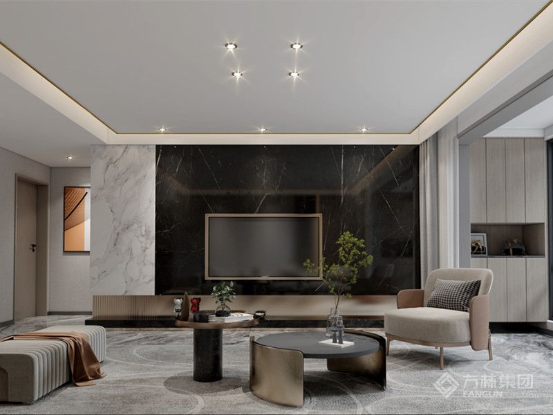 本案位于兴城市龙兴家园小区,一家四口居住,业主喜欢意式极简风格,喜欢神色的色调,整体色调运用黑胡桃木色,深色的地砖,搭配起来深邃且神秘,极具个性化。